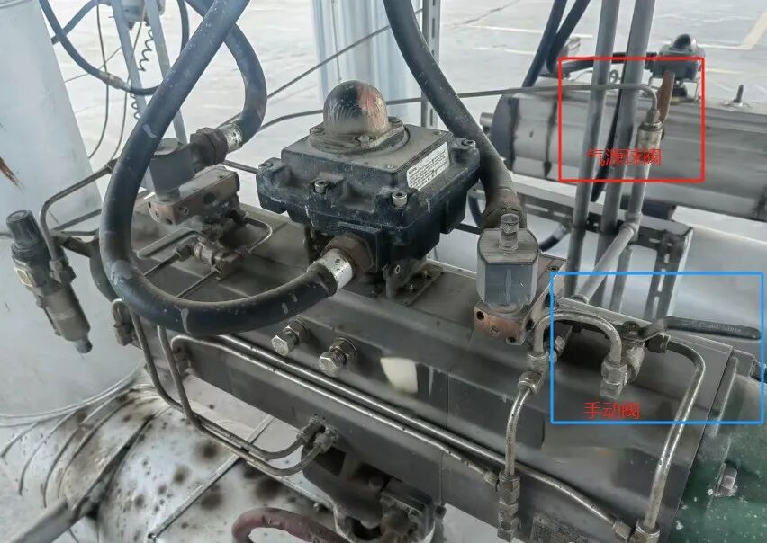 不是所有开关阀执行机构中加装的“手动阀”都需要进行“铅封保护”,也不是所有的开关阀的气源球阀都需要加装“铅封保护”,只有在控制阀的气源球阀所处位置容易受到误碰或误操作,为了避免阀门误动作,我们才需要对其气源球阀进行“铅封保护”。“专家”检查所依据的SH/T 3005-2016《石油化工自动化仪表选型设计规范》:10.3.6.8 在气动执行机构的气路上应能加装手动阀,现场操作手动阀能将阀门关闭,该手动阀应设铅封保护。专家要求做铅封保护的气源阀的具体位置,如图(1)红框标注位置,该位置气源阀是大家公认的阀门气源阀,也是目前各企业被要求做铅封保护的位置。