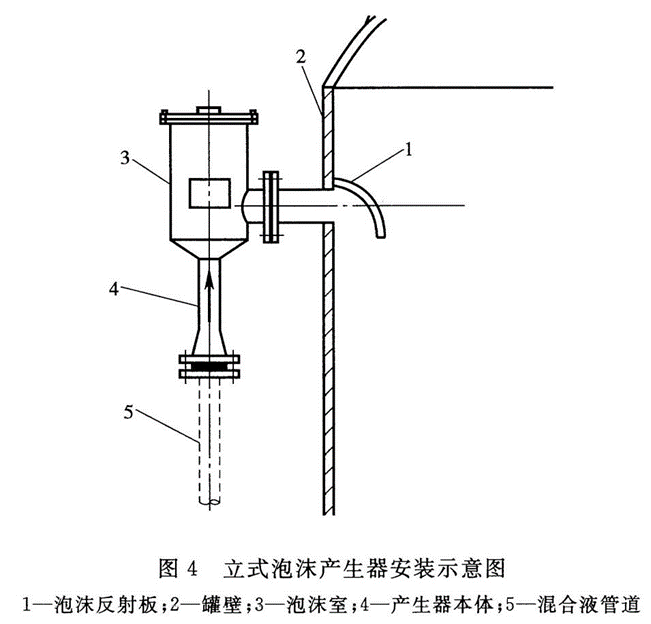 依据:《石油化工企业设计防火标准》(GB50160-2008,2018年版)第6.2.25条规定:储罐的进出口管道应采用柔性连接。该条款的条文说明:此规定是为了防止储罐与管道之间产生的不均匀沉降引起破坏。为了防止储罐因为不均匀沉降引起储罐进出口管道破坏,可燃液体地上储罐的进出口管道应采用柔性连接,且管道支架不应设置在金属软管前端。问题二:二期液氯储罐(VB-6103A~E)顶部氮气旋启式止回阀安装在介质自上而下的管道上,不符合安装要求。依据:《石油化工金属管道布置设计规范》(SH/T 3012-2011)第 10.4.2 条 旋启式止回阀应优先安装在水平管道上,也可安装在管内介质自下而上流动的垂直管道上。问题三:氨气压缩机(295-K-1101A)出口管道安全阀旁路阀无铅封。氮气压缩机(297-K-1103)一级出口管道安全阀出口闸阀阀杆垂直安装,不符合要求。依据:《石油化工金属管道布置设计规范》(SH 3012-2011)第 10.2.10 条 10.2.10当安全阀进出口管道上设有切断阀时,应铅封开或锁开;当切断阀为闸阀时,阀杆应水平安装;当安全阀股有旁路阀时,该阀应铅封关或锁关。问题四:未提供泡沫性能检验记录(油库泡沫液罐储存的泡沫液生产日期为 2022年2月24日,有效期至 2030年2月23日;某中转库泡沫液罐储存的泡沫液生产日期为2019 年2月20日,有效期至2027年2月19日)。依据:《泡沫灭火系统技术标准》(GB 50151-2021)第 11.0.13 条 11.0.13 应定期对泡沫灭火剂进行试验,发现失效应及时更换,试验要求应符合下列规定:1 保质期不大于两年的泡沫液,应每年进行一次泡沫性能检验;2 保质期在两年以上的泡沫液,应每两年进行一次泡沫性能检验。)问题五:遥墙油库内浮顶、拱顶航煤储罐使用横式泡沫发生器。依据:《泡沫灭火系统技术标准》(GB 50151-2021)第3.6.1条 低倍数泡沫产生器应符合下列规定:2 外浮顶储罐宜选用与泡沫导流罩匹配的立式泡沫产生器,并不得设置密封玻璃,当采用横式泡沫产生器时,其吸气口应为圆形;3 泡沫产生器应根据其应用环境的腐蚀特性,采用碳钢或不锈钢材料制成;4 立式泡沫产生器及其附件的公称压力不得低于1.6MPa,与管道应采用法兰连接;5 泡沫产生器进口的工作压力应为其额定值±0.1MPa;6 泡沫产生器的空气吸入口及露天的泡沫喷射口,应设置防止异物进入的金属网。1 目前工程中使用的低倍数泡沫产生器分为横式和立式两种。两者由于安装方式及制造材料的不同,在火灾下会表现出不同的特点。横式泡沫产生器在储罐上水平安装,出口采用法兰连接不小于1m的直管段,进口和管道采用螺纹连接。横式泡沫产生器一般采用铸铁铸造而成,少数采用不锈钢。由于安装特点,在储罐受到爆炸冲击时,横式泡沫产生器会受到力矩作用,再加上其进口连接比较脆弱,采用的材料韧性较差,使得该类型的产生器极易遭到破坏,尤其是目前不少工程中将其安装到了罐壁顶以上,更经不住储罐爆炸的影响。即便是在相对安全的外浮顶储罐,横式产生器也具有被破坏的风险。如2010年3月3日,我国某国家石油储备基地一个10×10m4原油储罐因雷击引起密封圈内的油气爆炸着火,泡沫堰板约80%向储罐中心倾倒(图2),储罐上12个横式泡沫产生器有11个遭到破坏(图3)。立式泡沫产生器为钢制的,有的还采用了奥氏体不锈钢,韧性较好。其泡沫室和产生器本体有一体式的,也有分体式的。由于其在储罐上铅垂安装,和其他管道均采用法兰连接,受力形式明显比横式泡沫产生器合理。因此,考虑到固定顶储罐和内浮顶储罐的火灾模式,规定应选用立式产生器,其在固定顶储罐上的安装方式参见图4。