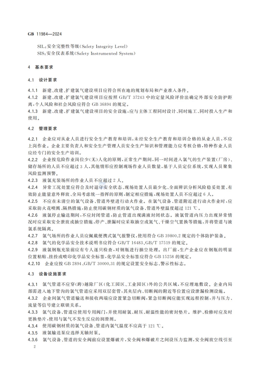 强制性国家标准《化工企业氯气安全技术规范》发布(标准可下载)